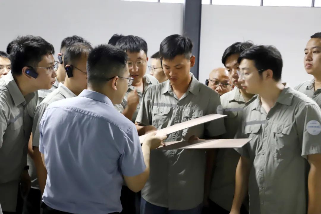 為了讓工程師們更直接地體驗(yàn)飾面板生產(chǎn)過(guò)程,來(lái)到3000㎡的體驗(yàn)中心。工程師們?cè)谖覀兊拇驑芋w驗(yàn)中心,親自體驗(yàn)了淋涂高光、3D壓紋、PUR平貼、準(zhǔn)分子膚感以及涂飾仿真同步壓紋等等工藝流程。工程師們與技術(shù)人員進(jìn)行了交流,更直觀地感受到了普瑞特在涂飾上的精益求精,獲得了工程師們的一致認(rèn)可。 萬(wàn)科工程師們帶著專(zhuān)業(yè)的問(wèn)題,與廣東瀚秋普瑞特技術(shù)團(tuán)隊(duì)進(jìn)行了深度交流。雙方在技術(shù)領(lǐng)域的智慧碰撞,共同探討中國(guó)智造的創(chuàng)新和方向。